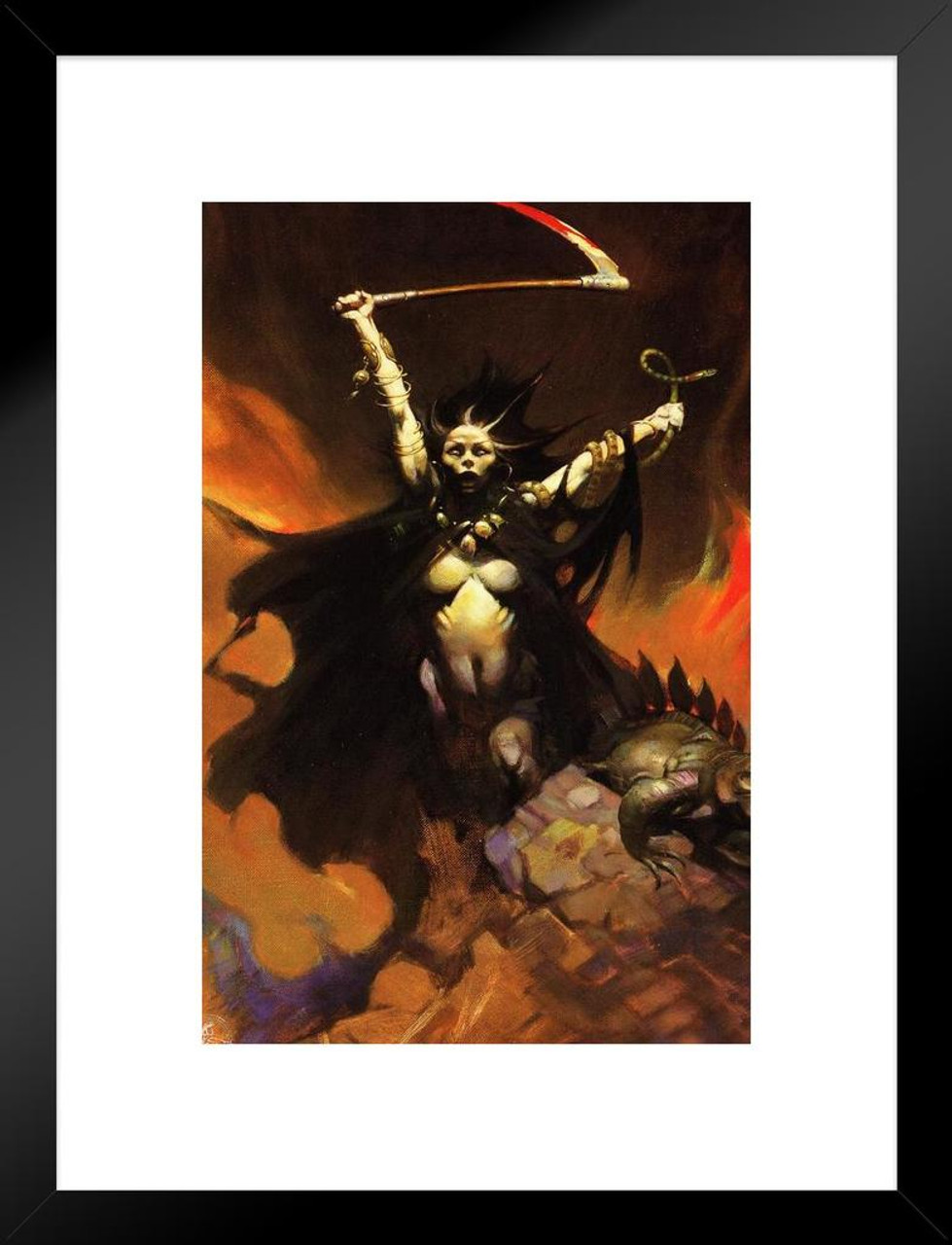 Woman With Scythe By Frank Frazetta Matted Framed Wall Art Print x26 Inch Poster Foundry