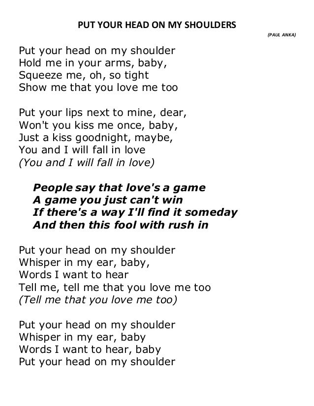Put Your Head On My Shoulder Lyrics And Music By Paul Anka Arranged By 7 Jesusmysavior