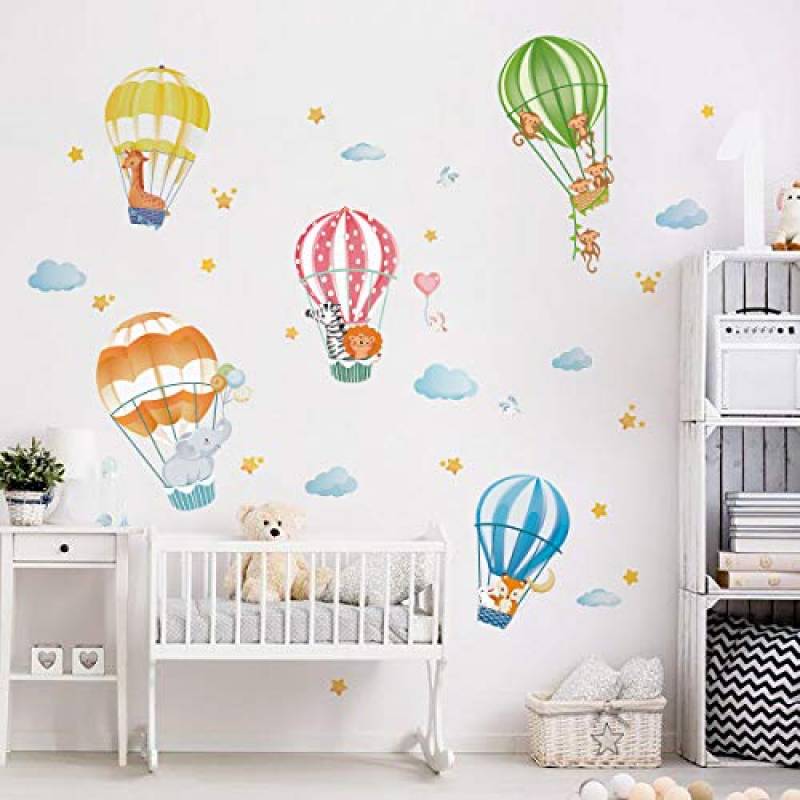 Decalmile Adesivi Murali Animali In Mongolfiera Adesivi Da Parete Giraffa Elefante Decorazione Murale Camerette Bambini Asilo Nido Camera Da Letto Sticker Da Muro E Lettere In Legno Decorazioni Per Interni