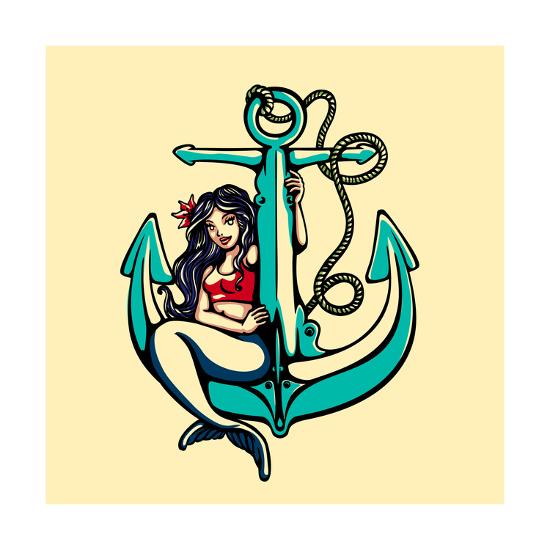 Pretty Siren Mermaid Pin Up Girl Sitting On Anchor Sailor Old School Style Tattoo Vector Illustrat Art Print Durantelallera Art Com