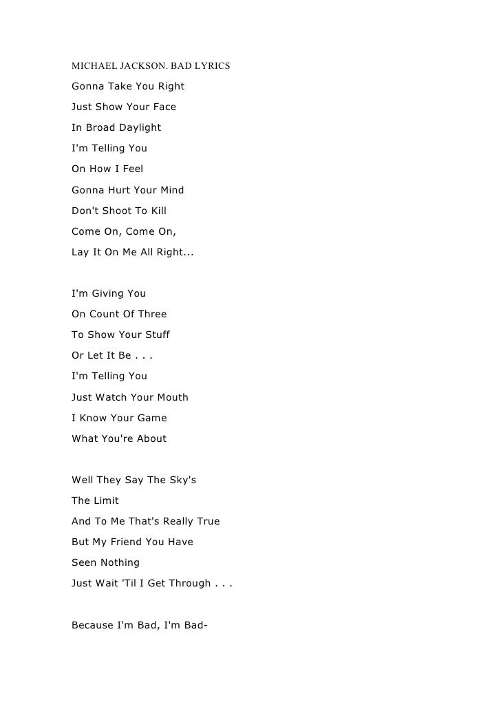 Lot Michael Jackson Bad Lyrics