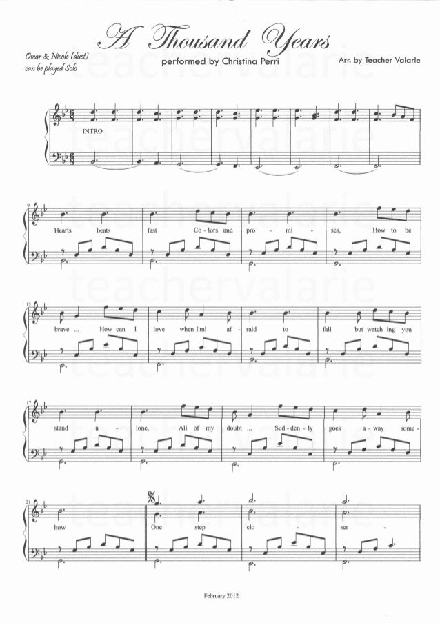 A Thousand Years Piano Sheet Music Christina Perri Sheetmusic Free Com