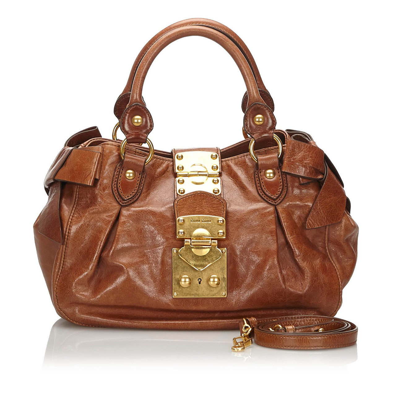 Miu Miu Brown Vitello Lux Fold Over Mini Bow Satchel Bag Yoogi S Closet
