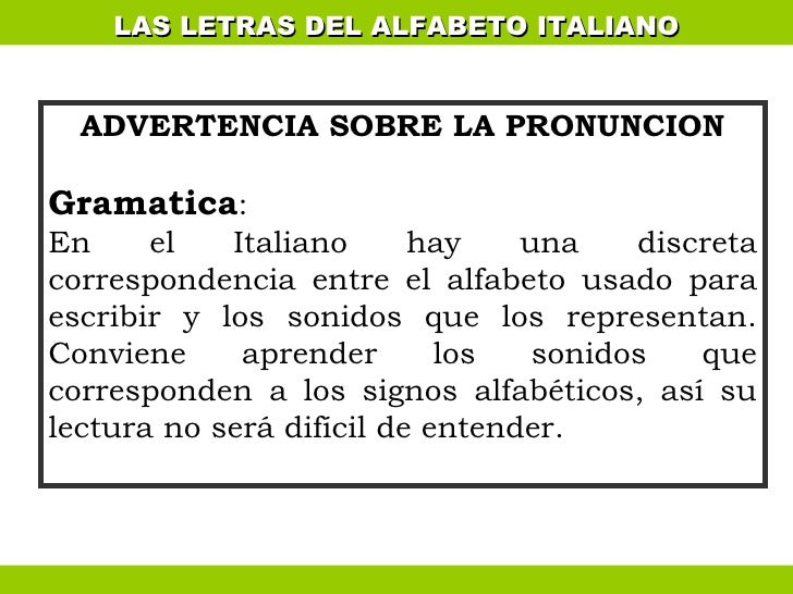 Taller De Lengua Y Cultura Italiana Upn L Alfabeto Italiano La Pronuncia E L Accento