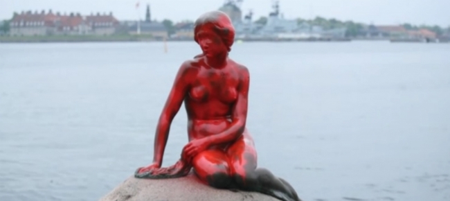 Danimarca La Sirenetta Di Copenaghen Dipinta Di Rosso