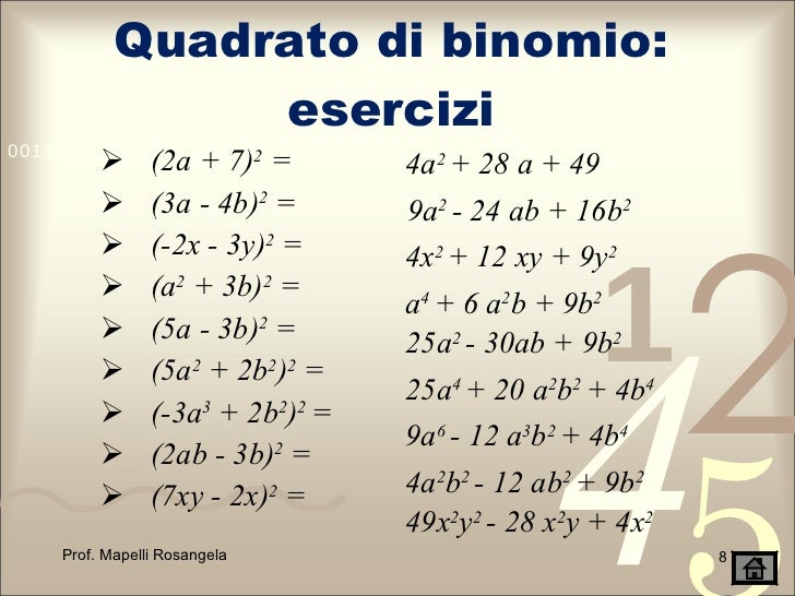 Prodotto Notevole Quadrato Di Un Binomio