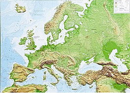 3d Raised Relief Map Europe 77 X 57cm