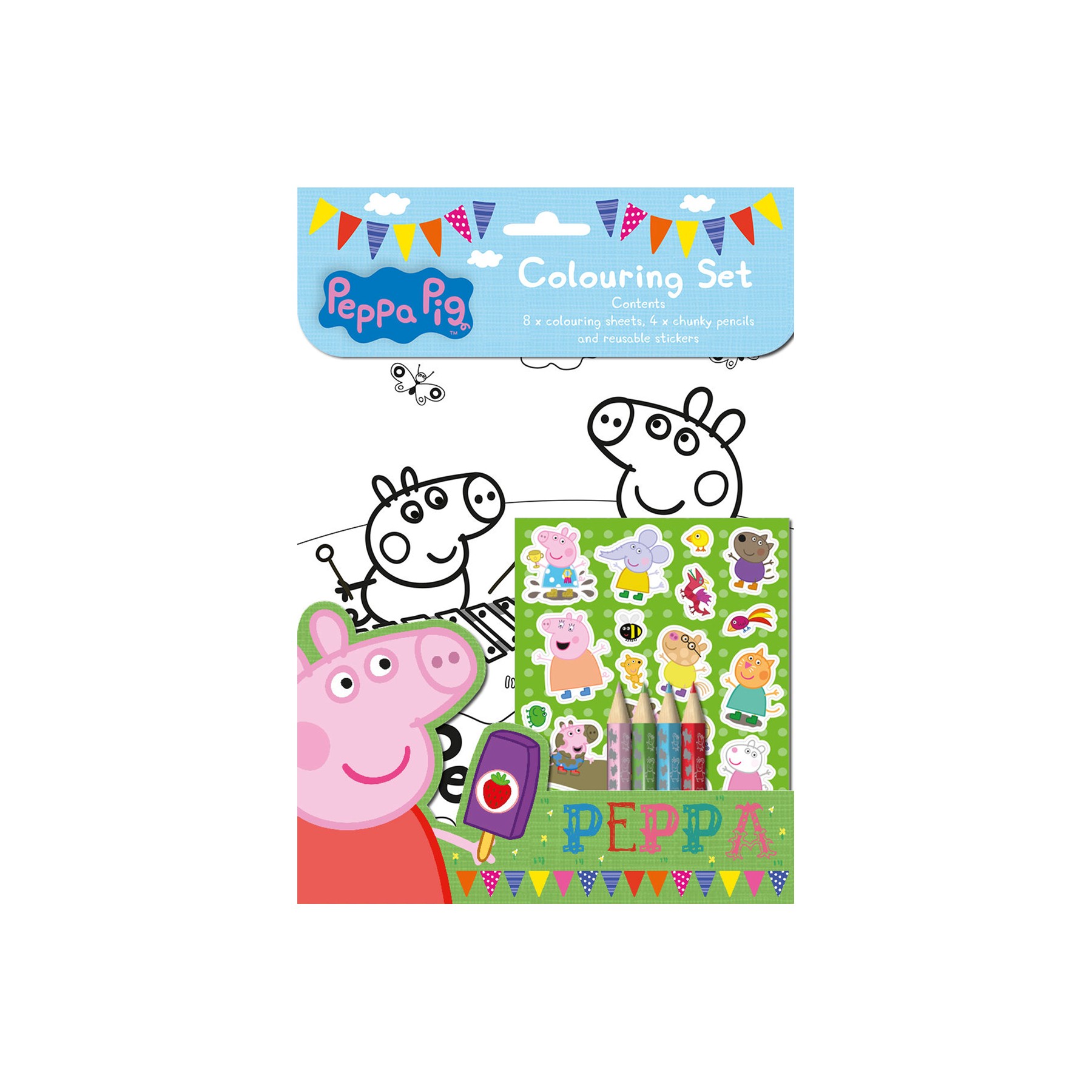 Peppa Pig Colouring Set With 8 Coloring Sheets 4 Chunky Pencils And Stickers For Sale Online Ebay