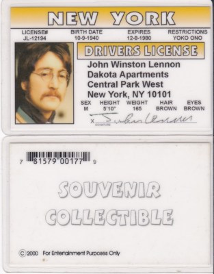 John Winston Lennon New York Drivers License Identification Id I D Card Driver S Ebay